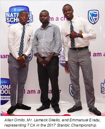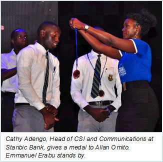 Teso College Aloet’s competition team took home the 3rd runner-up prize of savings accounts worth UGX 500,000 each. Students Allan Omito and Emmanuel Erabu, along with the project’s patron teacher, Mr. Lameck Okello, travelled to Kampala to compete in the Stanbic National Schools Championship on 29th April 2017.